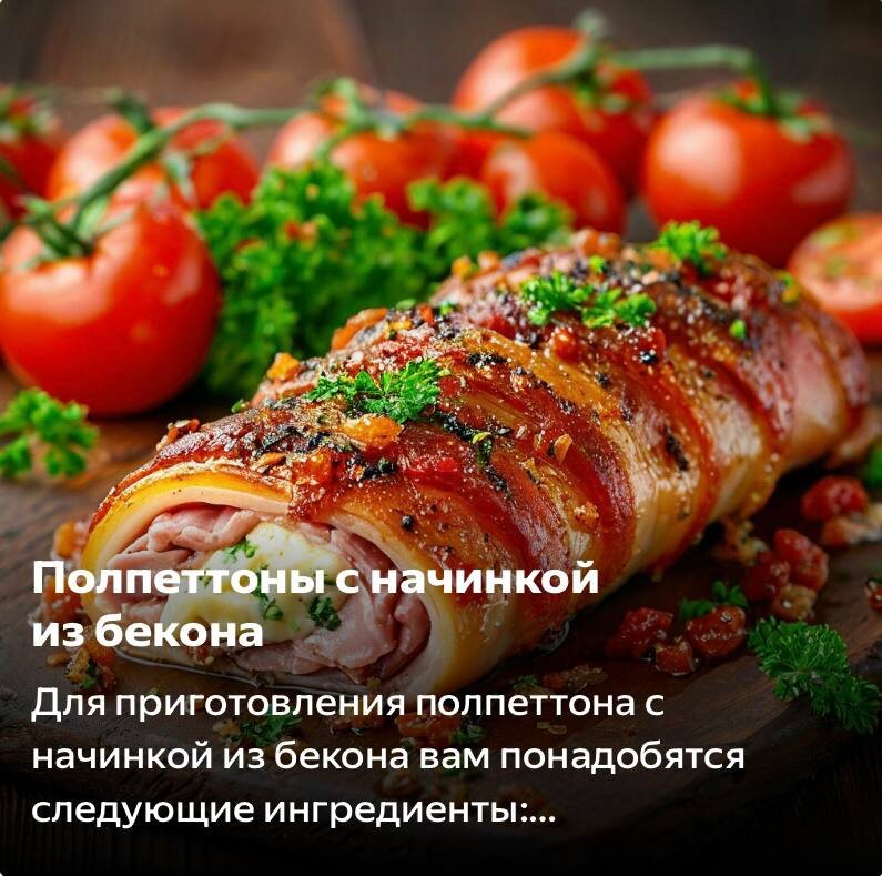 Для приготовления полпеттона с начинкой из бекона вам понадобятся следующие ингредиенты