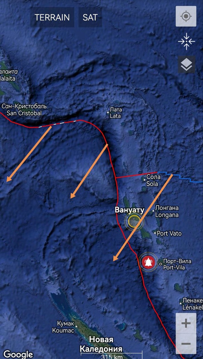 Today, at the M6+ level, the zone was traced near Vanuatu and to the north