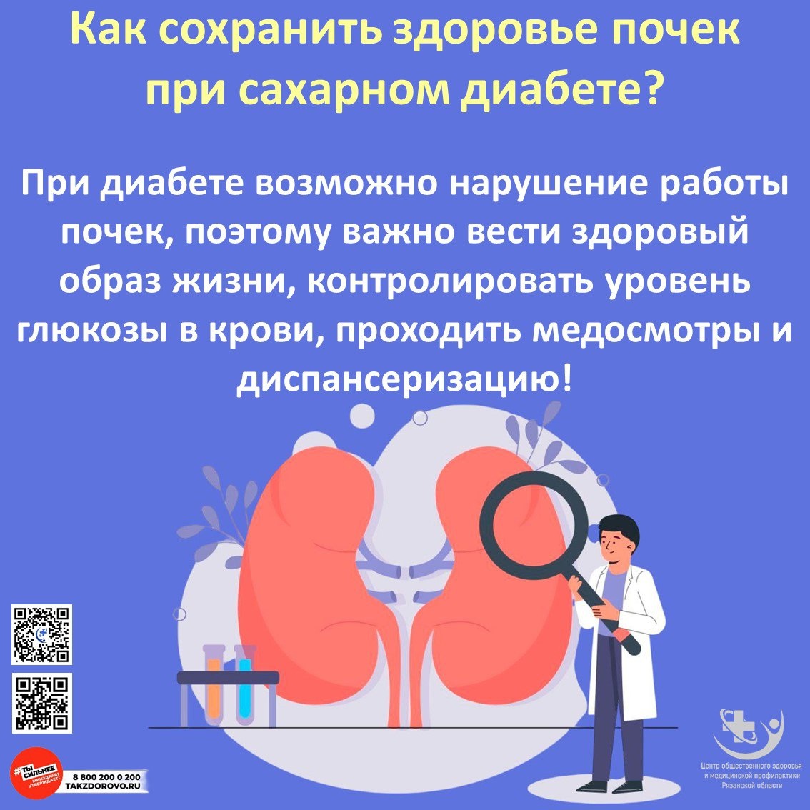 Как защитить почки при диабете? 💙🩺 Сахарный диабет – главный риск для здоровья почек. Простые правила профилактики: ✅ Контролируйте уровень сахара – стабильная гликемия снижает нагрузку на почки ✅ Следите за давлением – гипертония ускоряет поражение почек ✅ Сдавайте анализы 1-2 раза в год: Моча на микроальбуминурию Кровь на креатинин и СКФ ✅ Пейте достаточно воды (1,5-2 л в день) ✅ Откажитесь от курения – оно разрушает сосуды почек Первые тревожные признаки: Отеки Повышенное давление Изменения в анализах мочи Не ждите симптомов – профилактика работает! #ДиабетИПочки #Нефропатия #ПрофилактикаДиабета #ЗдоровоеБудущее62 #ЗдороваяРязань P.S. Ваши почки – естественный фильтр организма. Берегите их! 🌿