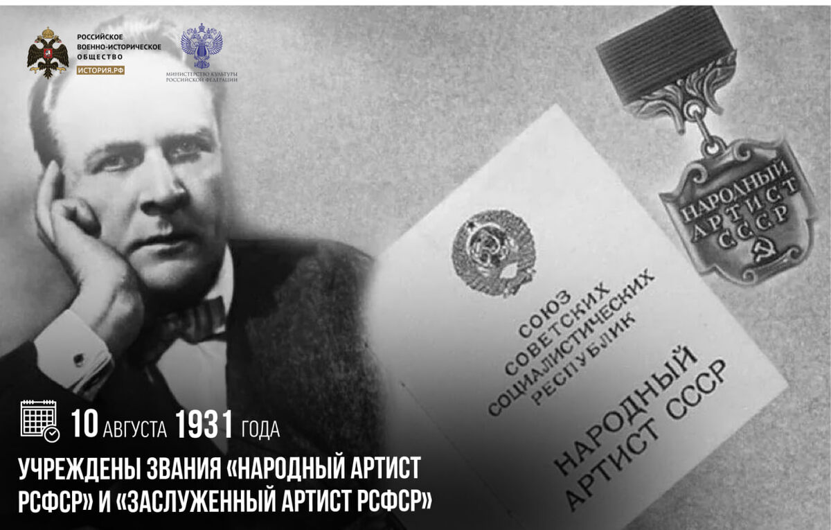 10 августа 1931 года были учреждены звания «Народный артист РСФСР» и «Заслуженный артист РСФСР»