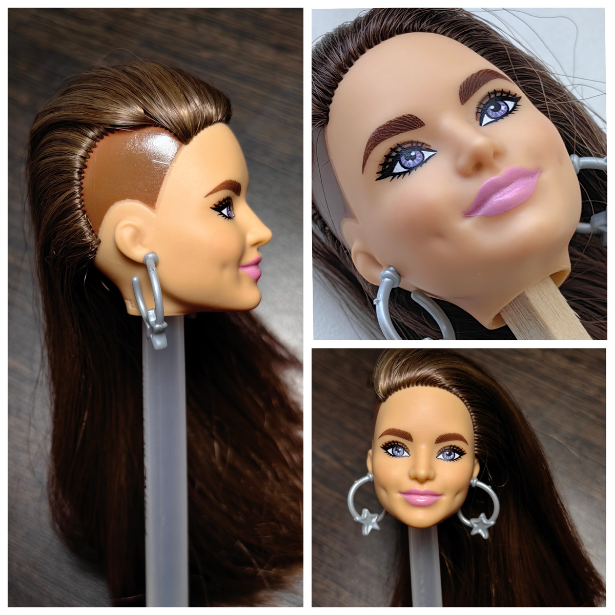 Ещё одна головушка экстры лежала ждала своей очереди в коробочке. Улыбашка с фиалковыми глазами 💜. Я упомянала о ней вскользь в посте про другую Викторию фэшенку. К экстре у меня долго не было тела, у неё скинтон с желтинкой. Плюс я ещё долго не решалась взяться за эту куколку, так как мне хотелось прошить висок, но ранее никогда не делала отверстия прошивки у линии лица. В итоге это оказалось не так страшно, всё получилось, могу теперь с большей уверенностью браться за головы без заводских отверстий. Шила нежнейшим молочным шёлком, всё же для меня это просто идеальный материал 😍. К примеру лежит ради интереса купленный саран катсилковский - он классный, конечно, но я тактильно больше люблю именно шёлк. Хотя, конечно, саран меньше блестит, более натурально выглядит, но для меня это не принципиально. Пробор ей сделала по середине, боковой с таким сильным зачёсом не очень люблю. Тело в итоге подобрала не барбейское - от Белоснежки Disneystore. Есть разнотон, что печалит немного.