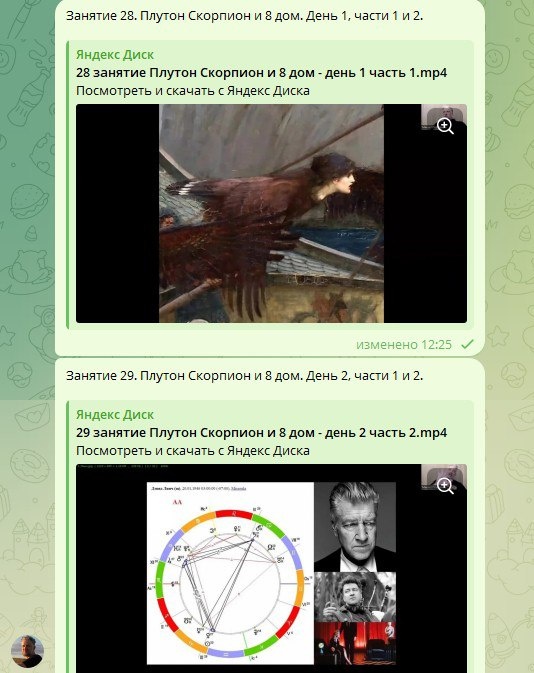 Ну и пока выходные, и пока лето - продолжим безобразия. Итак, праздничная раздача слонов 🌴🌴🌴. Я сейчас привожу в порядок видеозаписи курса по интуитивно-потоковой астрологии. Вот, кстати, как выглядят в тг обложки занятий про Планеты/Знаки/Дома ☝️(см.картинку) . И сегодня мы устроим маленькую экспериментальную распродажу. Темы такие: Сатурн/Козерог/10дом, Уран/Водолей/11дом, Плутон/Скорпион/8дом, Хирон/Весы/7дом, Любую из этих тем (в каждой по 4 занятия) можно приобрести всего за 2,5 тысячи рублей (вместо обычных 5 тысяч рублей) Либо одно занятие можно приобрести за 800р вместо 1350р. Это - разгон энергии после каникул и встреча директного Меркурия. Давайте не мелочиться и включим сюда же темы про Деву/Прозерпину/6 дом и про Хирон/Весы/7 дом. Без рассмотрения эгрегора Прозерпины или Хирона понять Деву и Весы невозможно. Даже статья на эту тему есть. Акция продлится до четверга. В общем, пишем в личку @astro_mir_mir : хочу такую-то планету!!!!!🔥🔥🔥 И будет вам счастье, удо