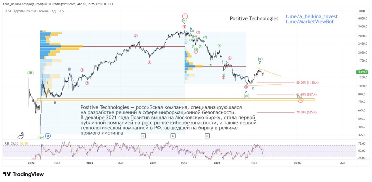 #IT #POSI сектор кибербезопасности остается растущим не только в России, но и глобально. Недавние хакерские атаки на крупные компании показывают их уязвимость. В прошлом году группа Позитив отмечала падение спроса на IT-продукты, снижение бюджета заказчиков - но текущий год со всплеском хакерских атак может развернуть этот тренд. На российском рынке сектор кибербезопасности представлен только Позитивом, в перспективе можем увидеть IPO Соллар - дочка Ростелекома. По технике: С низов мая 2025 импульса нет, а продолжительность отката уже слишком велика, чтобы вести волну b of (y) of [ii]. Пришлось немного пересмотреть структуру падения с максимумов, чтобы привести текущий откат на промежуточную волну (х) двойного нисходящего зигзага. В видео наглядно показала, что с майских низов нет импульса. Поставили (или ставится) дзз в волне (х). Сама волна (х) может встать любой формой коррекции, по завершении которой ожидаю увидеть продолжение снижения в волне (y) of [ii]. Не является ИИР
