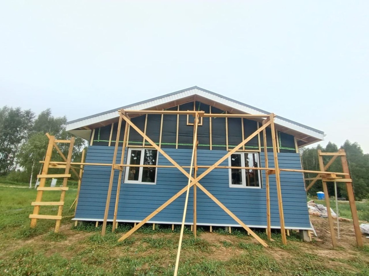♦️Этап наружной отделки стен дома ✅ Наружная отделка - имитация бруса 20х140, хвоя, сорт АВ 🎨 🌈 Обработка по схеме +1 слой грунт со всех сторон +2 слоя краска с 3-х сторон ✅ Промышленный состав Teknos цвет Т 7034 (окраска в заводских условиях)