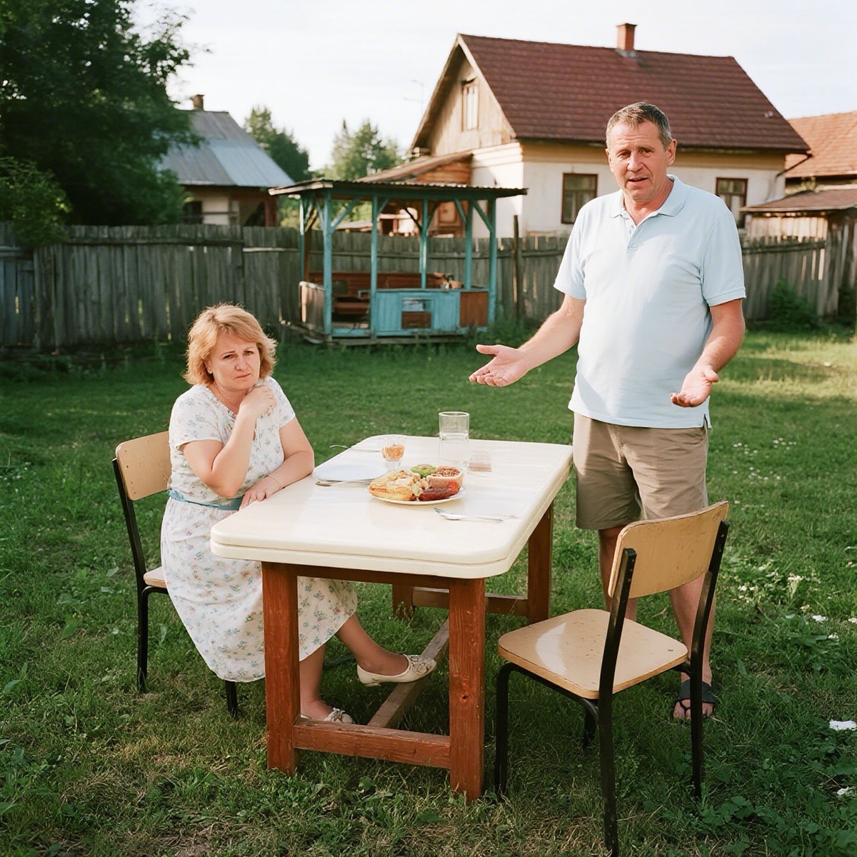 — Денис, — тихо сказала она ему на ухо, когда Света с Олегом отвлеклись на соседского кота, забредшего в огород. — Может, намекнёшь как-то про еду?