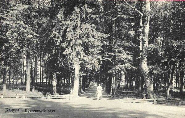 По воскресным дням в сад из центра города катили на своих рысаках купеческие семьи: Грибановы, Рыжечкины, Калуновы, Черновы и т.п. А по тротуарам шла большая масса обывателей среднего достатка. На правой стороне круга (сейчас там могила К.Э. Циолковского. – Авт.) располагался оркестр военной музыки. Невдалеке был «вокзал», где танцевали.