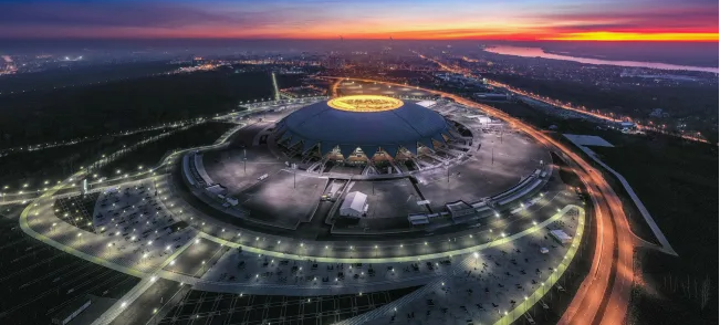 Стадион «Самара Арена» — один из самых впечатляющих спортивных объектов России, построенный к Чемпионату мира по футболу 2018 года. Расположенный в живописном районе Самары, он стал не только спортивным, но и архитектурным символом города. Строительство стадиона началось в 2014 году и завершилось в 2018 году. За это время был создан уникальный спортивный объект, отвечающий всем требованиям FIFA. Дизайн стадиона поражает своей оригинальностью. Купол арены, выполненный в форме космического объекта, стал визитной карточкой сооружения. Общая площадь стадиона составляет более 120 тысяч квадратных метров. Вместимость арены — 45 000 мест, каждое из которых обеспечивает отличный обзор поля. Особое внимание уделено комфорту зрителей: современные трибуны, удобные проходы и развитая инфраструктура. Игровое поле стадиона оснащено системой подогрева и дренажа, что позволяет проводить матчи в любое время года при любых погодных условиях. Стадион оборудован: современной системой освещения; качествен