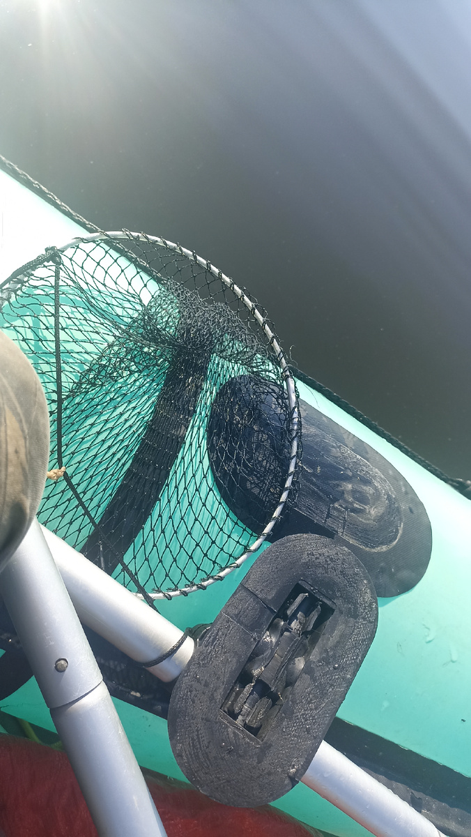 Да, небольшая сложность. Для того что б обеспечить под уключиной ровное пространство, пришлось немного накачать баллон лодки, потому что оказалось, что перемычка между баллонами была изначально завернута в тот баллон, где уключина и мешала ровной укладке склеиваемых частей. Полностью баллон накачивать не пришлось. Примерно наполовину, и чуть надавить, что б перемычка ушла в соседний баллон. В итоге получилось не то что б уж очень красиво, но для моих оч умелых ручек - вполне.