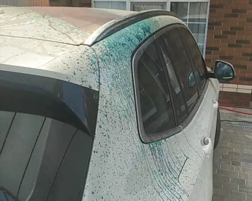 А теперь неприятности переместились в его частный двор в СНТ "Дружба-1" - на днях машину супругов Ганич щедро полили зелёнкой. Это случилось, когда муж с женой гостили у соседей - пили чай на веранде и не подозревали о правонарушении.