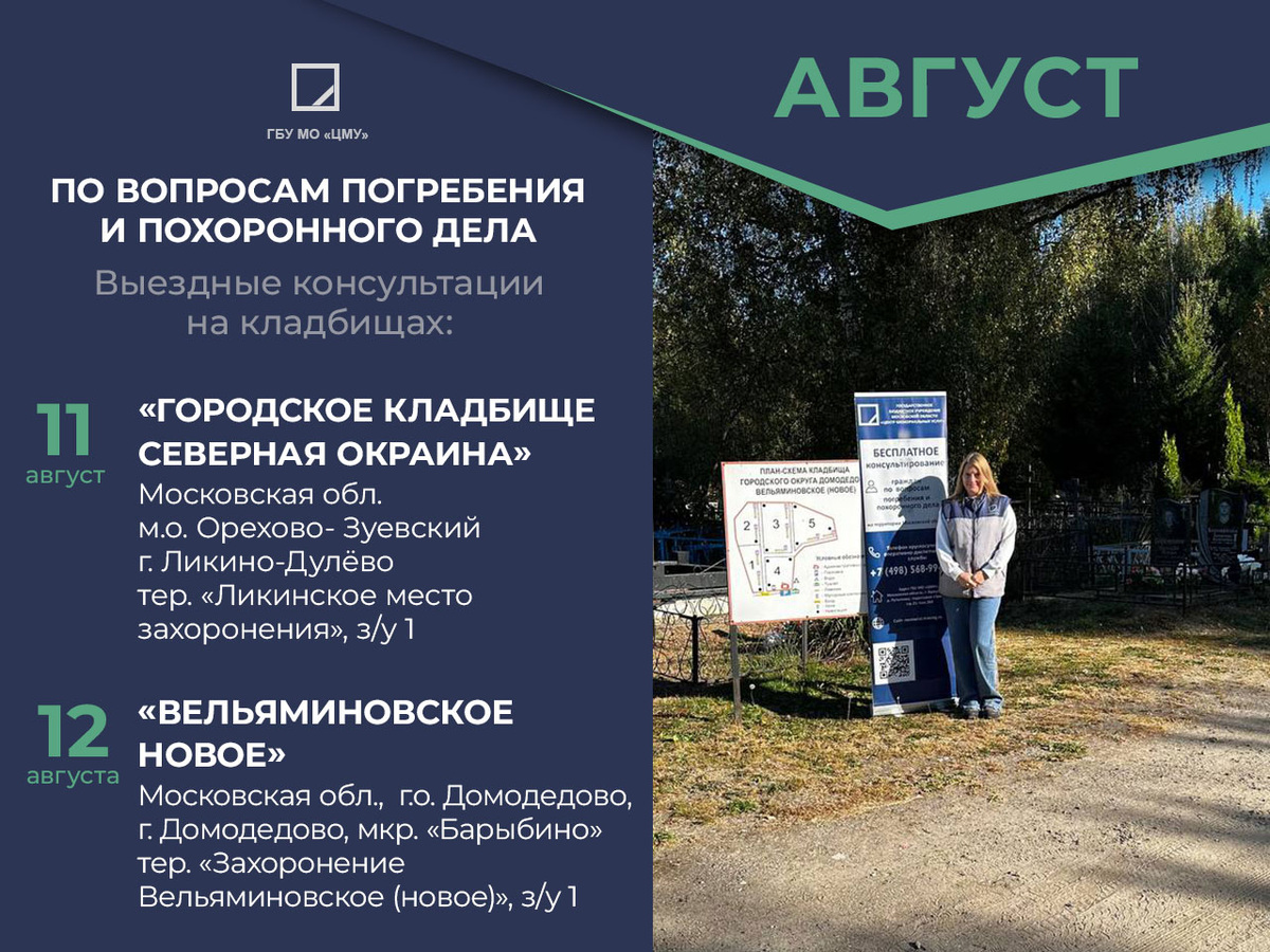 Следите за анонсами выездов ГБУ МО «ЦМУ» на кладбища на наших официальных страницах:
