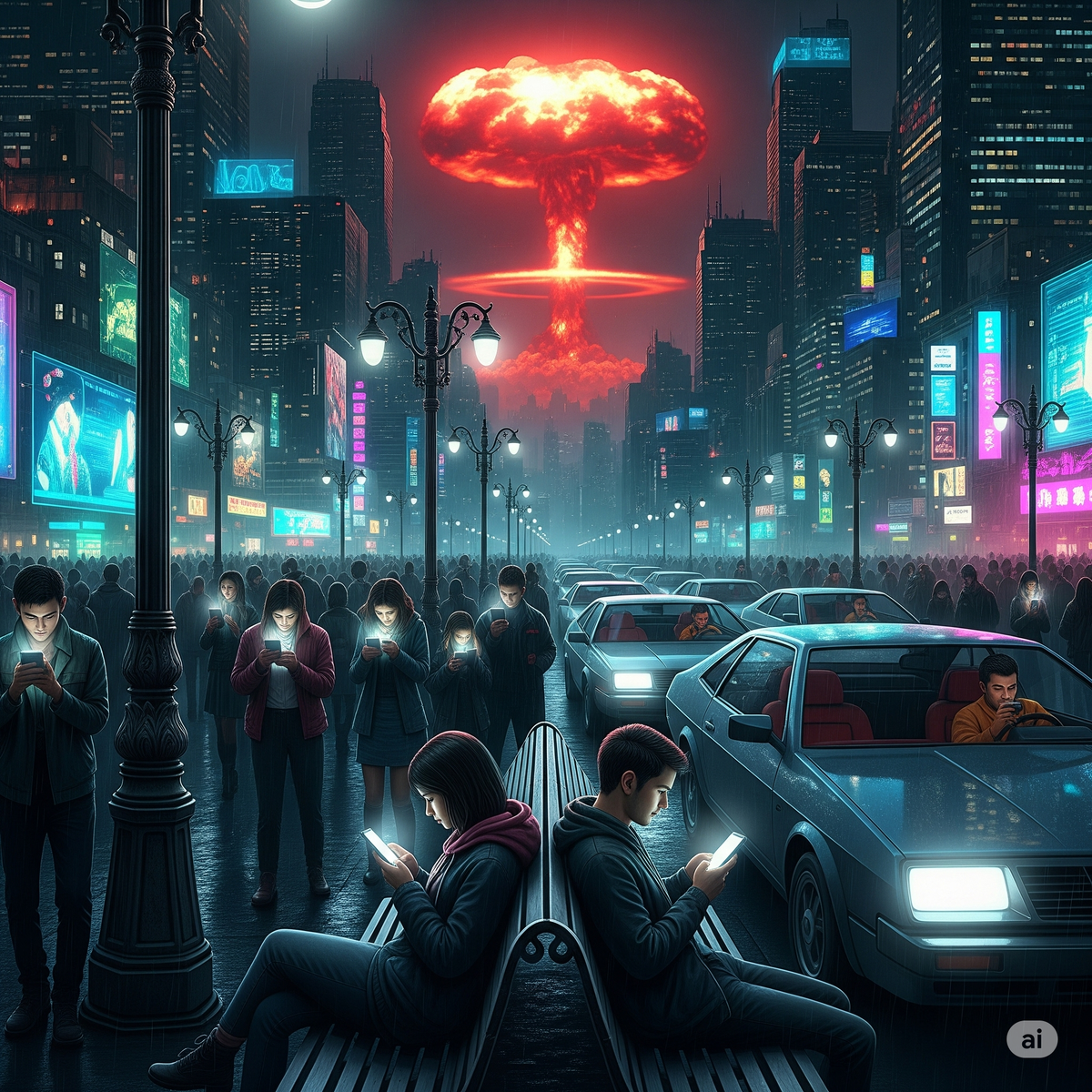 Современная цивилизация совершила опасную подмену. Окно Овертона, некогда описывающее сдвиг границ политического дискурса, стало механизмом стирания границ самой реальности. Беспрерывный поток информации — войны, катастрофы, этические провалы — не просто обрушивается на нас. Он мерцает. Экран смартфона, этот универсальный дисплей бытия, превращает апокалипсис в цифровой карнавал ужасов, который мы потребляем между уведомлениями. Подлинный экзистенциальный страх — ужас перед ядерной бездной, экологическим коллапсом, распадом смысла — полностью растворяется в этом мерцании. Его вытесняет онтологическая анестезия скролла. Ужас тотального уничтожения слишком глобален, слишком непостижим. А вот доза виртуального кошмара — порционна, доступна, привычна. Мы "потребляем" катастрофы, как обычный контент, и их накал гасится соседством с мемами и рекламными объявлениями. Окно Овертона работает на истощение: то, что вчера казалось немыслимым (цифровое рабство, массовая слежка, дегуманизация в с