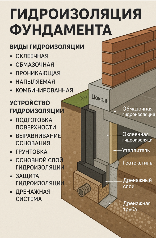 Особенно опасны: Цена зависит от площади, типа материалов и технологии. В среднем: На одном объекте подрядчики решили сэкономить: нанесли битумную мастику на грязный бетон, без грунтовки и защиты. Через два года в подвале появились потёки, а ещё через три — ржавчина на арматуре. Ремонт стоил в 4 раза дороже, чем изначально сделать всё по технологии. Гидроизоляция фундамента — это не просто пункт в смете, а инвестиция в долгую жизнь дома. Сделайте её правильно один раз — и забудете о сырости, плесени и ремонтах на десятилет
