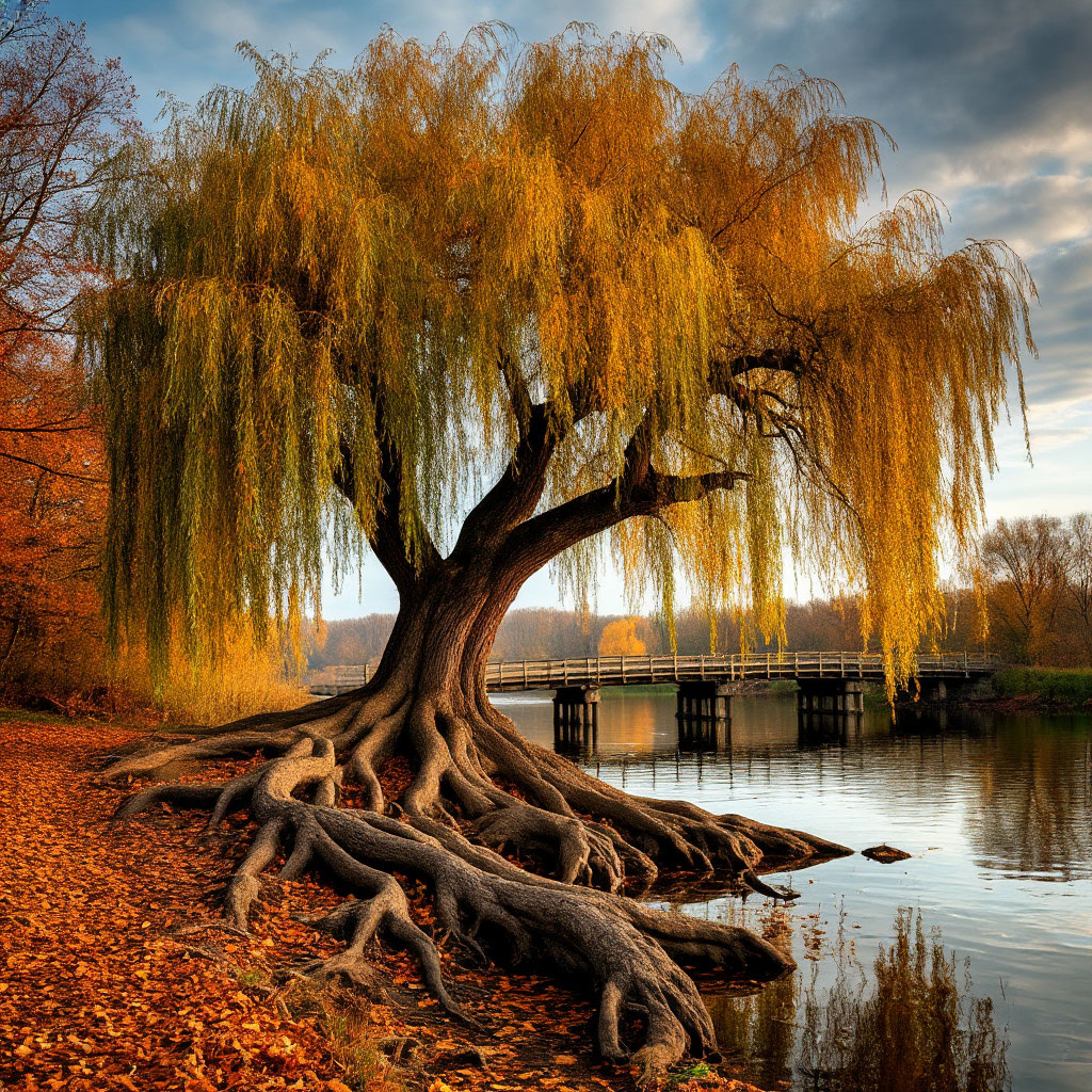 Дойдя до моста, спустилась вниз, села под иву, вытянула ноги.
