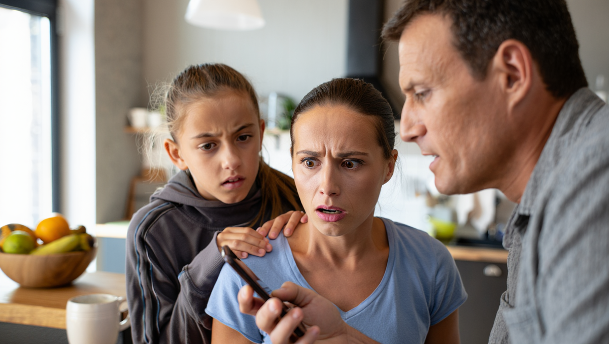 Катя молниеносно выхватила телефон из рук матери, ее лицо исказилось от смеси страха и злости.