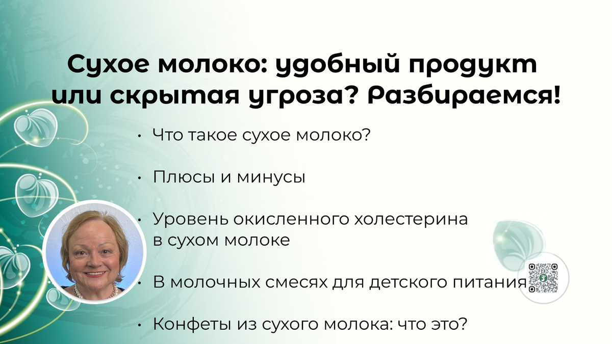 Сухое молоко — привычный продукт для многих семей. Его добавляют в выпечку, используют в производстве шоколада, детского питания. Множество магазинных продуктов (молоко, сметана, йогурты и т.д.) делают из восстановленного сухого молока. Не сообщая об этом. Так ли это безопасно и полезно, как кажется? 1. Что такое сухое молоко? Сухое молоко - это обычное коровье молоко, из которого выпарили всю влагу. В результате получается порошок, богатый белками, жирами, витаминами и минералами. Плюсы сухого молока: ✅Долгий срок хранения (до нескольких лет при соблюдении правильных условий). ✅Удобство транспортировки и хранения. Но есть и минусы. О чём стоит задуматься? Один из самых серьезных недостатков сухого молока — содержание высоких доз окисленного холестерина, который образуется в процессе высушивания молока и длительного хранения. Окисленный холестерин — это токсин, который: ❌Повреждает стенки сосудов, провоцируя воспаление. Способствует образованию атеросклеротических бляшек. ❌Повышает рис