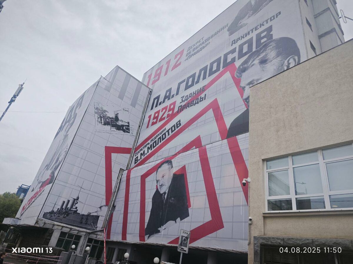 ВЕЧЕРНИЙ ЗВОН: встреча уходящего дня Проезжал в Москве по улице «Правды» - и не поверил глазам. Вместо печального обгоревшего дома № 24, где легендарный Шестой этаж много десятилетий занимала «Комсомолка», - гигантская красочная декорация. Рядом с писателем Максимом Горьким – революционер Николай Бухарин, бок о бок с военкором Константином Симоновым – организатор массовых репрессий Лев Мехлис, по соседству с расстрелянным репортером Михаилом Кольцовым – Сергей Бодров из «Брата» с его нетленным «Сила в правде». Тут же – Юрий Гагарин, олимпийский Мишка, лампочка Ильича… История великой страны. И моя маленькая личная история. Остановился. Пофотографировал. Повспоминал. Здесь я написал первую в жизни заметку. Отсюда поехал в первую командировку. Тут понял, что такое Дух Шестого Этажа, когда меня, раненого, коллеги вытащили из Цхинвали… Наш дом долго стоял беспризорным после пожара в 2006 году. Его бы давно снесли и построили новый, но нельзя – объект культурного наследия. Говорят, пос