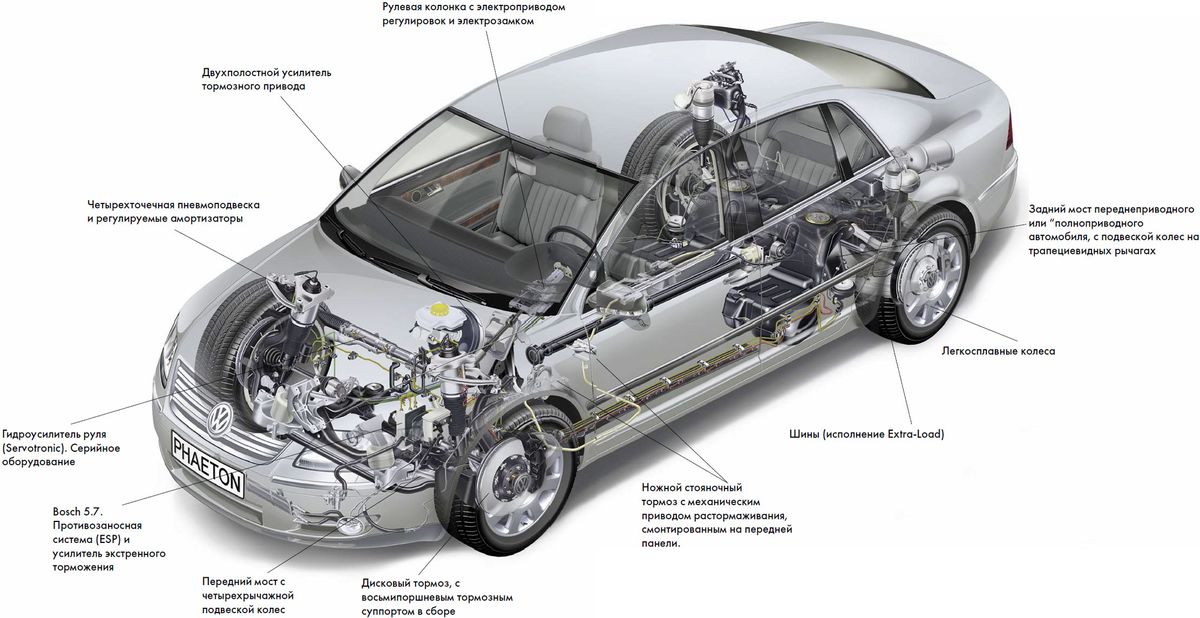 Подвеска обеспечивает комфорт и безопасность, смягчая удары от неровностей дороги. Она состоит из амортизаторов, пружин, рычагов и стабилизаторов.