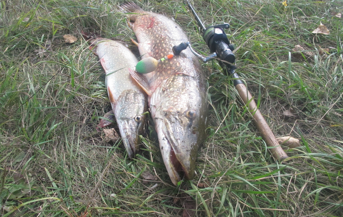 Есть рекорд! Сегодня воскресение, но синоптики пугают дождем и грозами. Поэтому большого прессинга на водоеме не ждал, хотя за окном с утра была вполне рыболовная погода. Быстро собрался и поехал за карасями. Впервые на старице ни души, запугали народ синоптики. Поймал 15 карасиков, но живец в основном мелкий. Попался и ладошечный карась. Таких я отпускаю, но решил взять. Отпустить ведь никогда не поздно. Приехал на речку, а там похоже никто синоптиками не увлекается. Даже впервые в этом сезоне лодки появились. Ну и я лодку спустил, мотор завел и на яму. Удивился, что там никого, но и обрадовался, конечно. Процесс отработан, насадил живца и принялся утюжить яму. Ни поклевки. Посмотрел на часы, а там еще половина восьмого. Рано еще. Успокоился, продолжил соблазнять щук. Ровно через час первая поклевка. Поплавок скачет, слегка притапливается, всплывает. Минут 5 терпел, хотя сразу понял, что щурёныш балуется. Подсек, пусто. Достал, карась весь искусан. Надо менять. Нашел покрупнее, насад