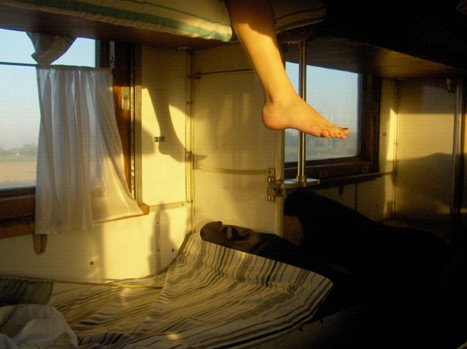 Не смейтесь, пожалуйста, это действительно так. Это была боковушка плацкарта, с нее свалиться сложнее, но все равно страшно.