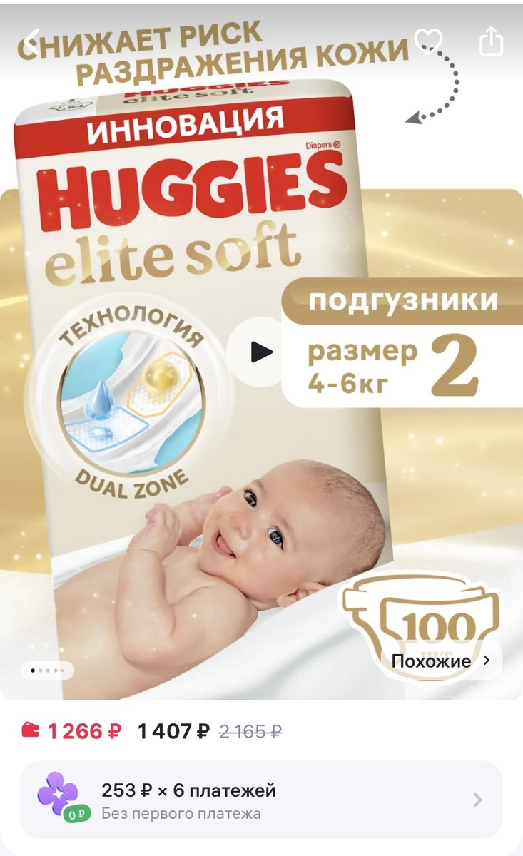 Нашими первыми подгузниками стали Huggies elite soft. К счастью, у сына не было раздражения, они отлично подошли, и мы пользовались ими пока не перешли на трусики. Соотношение цены и качества отличное, хорошо впитывают, не рвутся при одевании.