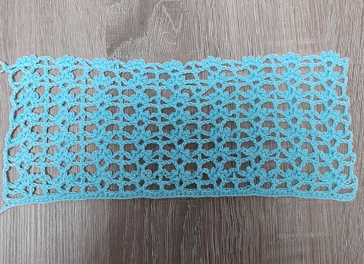 Связался у меня вот такой образец. Теперь крючком решила попробовать. Узор простой, но и здесь накосячить вполне реально. Пару ошибок я допустила, исправлять не стала, так как это образец, но в основном полотне буду тщательно следить. Думаю, что этот узор для лёгкого кардигана вполне подойдёт.