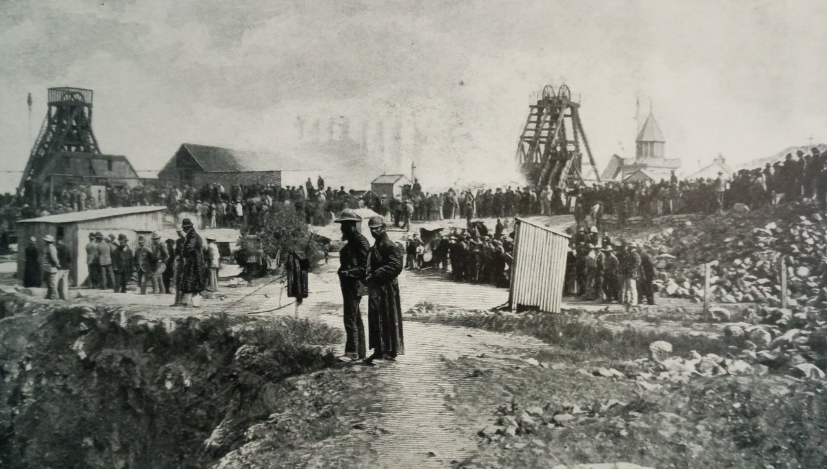 Информация: Музей Макгрегора в Кимберли Великий пожар на шахте компании Де Бирс в Кимберли, Южная Африка, 11 июля 1888 года – один из самых разрушительных подземных пожаров, когда-либо зафиксированных в ЮАР. Из 685 шахтеров, работавших в тот момент (по данным Алфеуса Уильямса), погибли 202 человека. (Из книги Стива Лундерстедта «Кимберли зовёт... и отзывает»): «Во время смены смен лопнула тяговые канаты, и ковш с рудой с ужасающей скоростью помчался вниз по стволу. Масляные лампы разбились, и горящая жидкость быстро воспламенила деревянную обшивку ствола. Шахта вскоре заполнилась дымом, и фонари, которые несли шахтёры, погасли. Охваченные паникой туземцы и белые, пытаясь спастись, сгрудились в штольнях и задохнулись насмерть». Две шахты были разрушены, одна осталась нетронутой. «В городе Кимберли царила ужасная паника. Сцены, описанные поисковыми группами, были ужасающими. Шахтёрам пришлось использовать динамит, чтобы расчистить проходы от трупов». Информационное агентство Reuters сооб