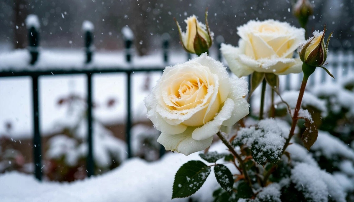 Перед ней красовалась обнесенная новенькой оградкой клумба, а на ней... Наплевав на минус пять по Цельсию, не обращая внимания на снег и совершенно не замечая ледяной ветер, цвела белая роза.