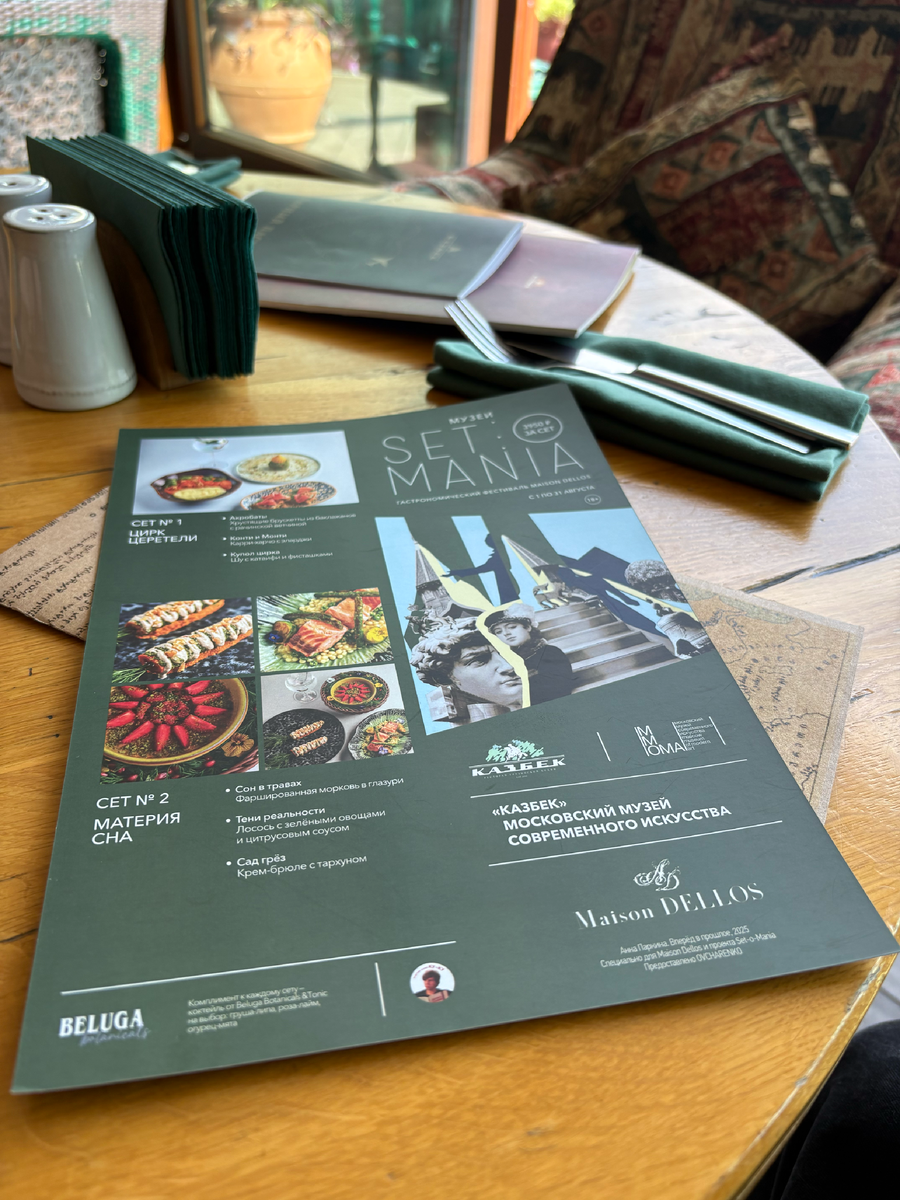 Этим августом в Москве рестораны Maison Dellos превращаются в кулинарные арт-галереи. С 1 по 31 августа проходит фестиваль Set-o-Mania, и в этом году он посвящён музеям. Концепция звучит интригующе: 8 ресторанов — 8 музеев, и каждый сет вдохновлён конкретной выставкой. Фестиваль уже стал традицией. Каждый раз у него своя тема: были и сказки, и театры, а теперь — музейные залы, только вместо картин и экспонатов — тарелки с шедеврами от шефов. В программе: • 8 ресторанов Maison Dellos, включая Кафе Пушкинъ, Турандот, Шануар, Матрёшку, Казбек, Бочку и Шинок; • 15 сетов, 14 из которых — блюда, которых нет в основном меню; • 3950 рублей за сет; • и даже take away-дуэт в Кафе Пушкинъ у фонтана (ГУМ). Каждый ресторан сотрудничает с одним из крупных музеев: Третьяковская галерея, ГМИИ им. Пушкина, Музей русского импрессионизма, Музеи Московского Кремля, Музей Москвы, ММОМА и другие. А для тех, кто готов пройти фестиваль до конца и попробовать хотя бы по одному сету в каждом ресторане — предус