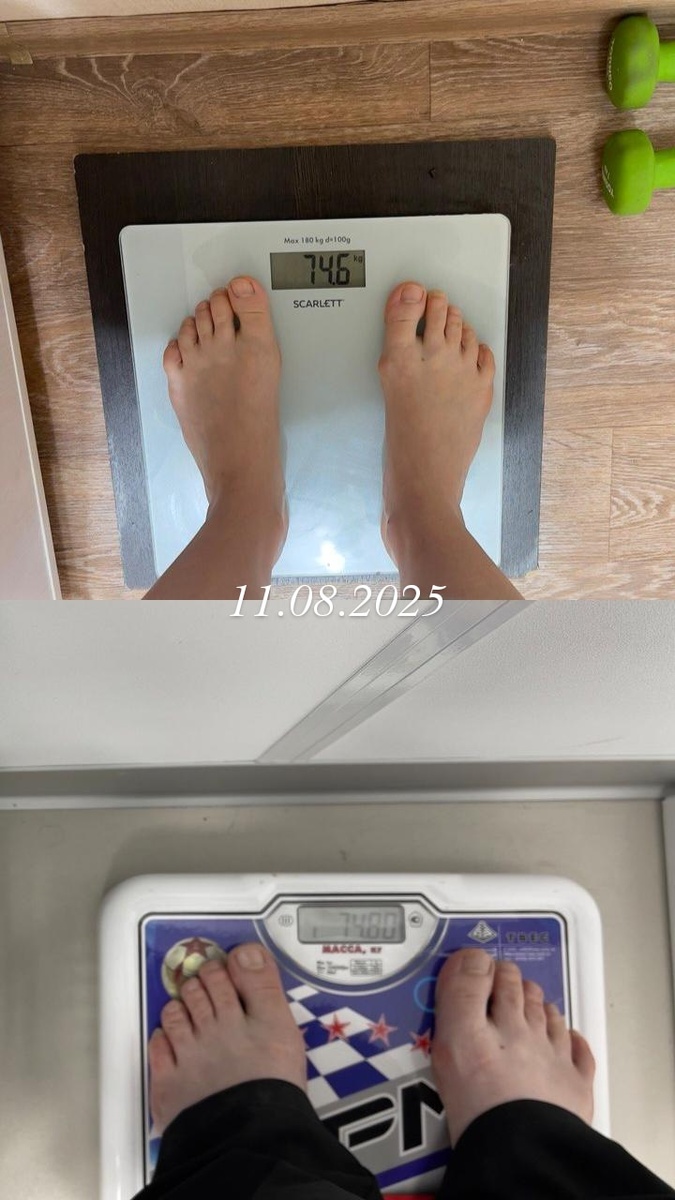 И снова взвешивалась дома и на работе. Если сравнивать с первоначальными фотографиями, то по домашним весам -2,1 кг, а по рабочим -2,35 кг. В любом случае, я чувствую, что отеки спали, т.к. джинсы стало проще застегивать😅.