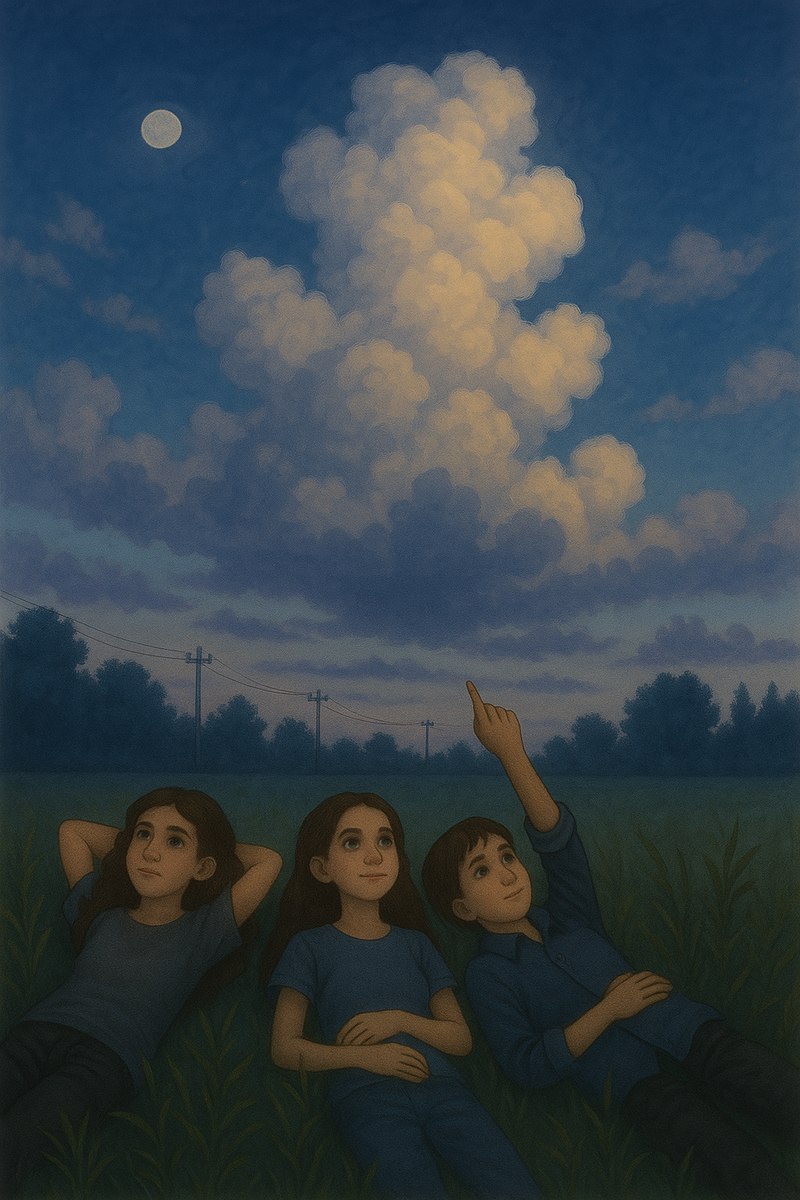 Трое друзей лежали на сухой траве и рассматривали облака.