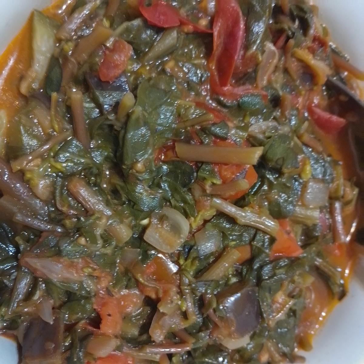#ГедеоноваСтряпня, #НизкаяКухонька, #МахаБринджал, #ИндийскаяКухня, #Баклажанчик, #Помидорыч, #Портулак, #вегго Вот наконец и все составляющие для одного из моих любимых тоблюд созрели. Оригинал - из индийской, даже "ведической", то бишь кришнаитской кухни. С моими авторскими и региональными поправками, ганещно же. Главная из них - это портулак, в этом году заполонивший все огороды, вместо щпината из оригинального рецепта. Что ж, поехали)) Нарезаем попросту луковку Кромсаем кубичками баклажан обжариваем на масле со специями (у меня чили и кумин, затем кориандр и паприка) вкладываем помидорыч Тушим до мягкоты всё вместе, помешивая Кромсаем промытый портулак Отправляем туда же, дотушиваем Ещё один мой Кук хак - мелко нарубаем солёный или маринованный огурец, половину откладываем, пюрируем, возвращаем обратно, подвариваем - получается полупюре При желании, как у меня, доводим вкус до желаемого соевым соусом, смесью перцев или что там пожелается, и вкушаем