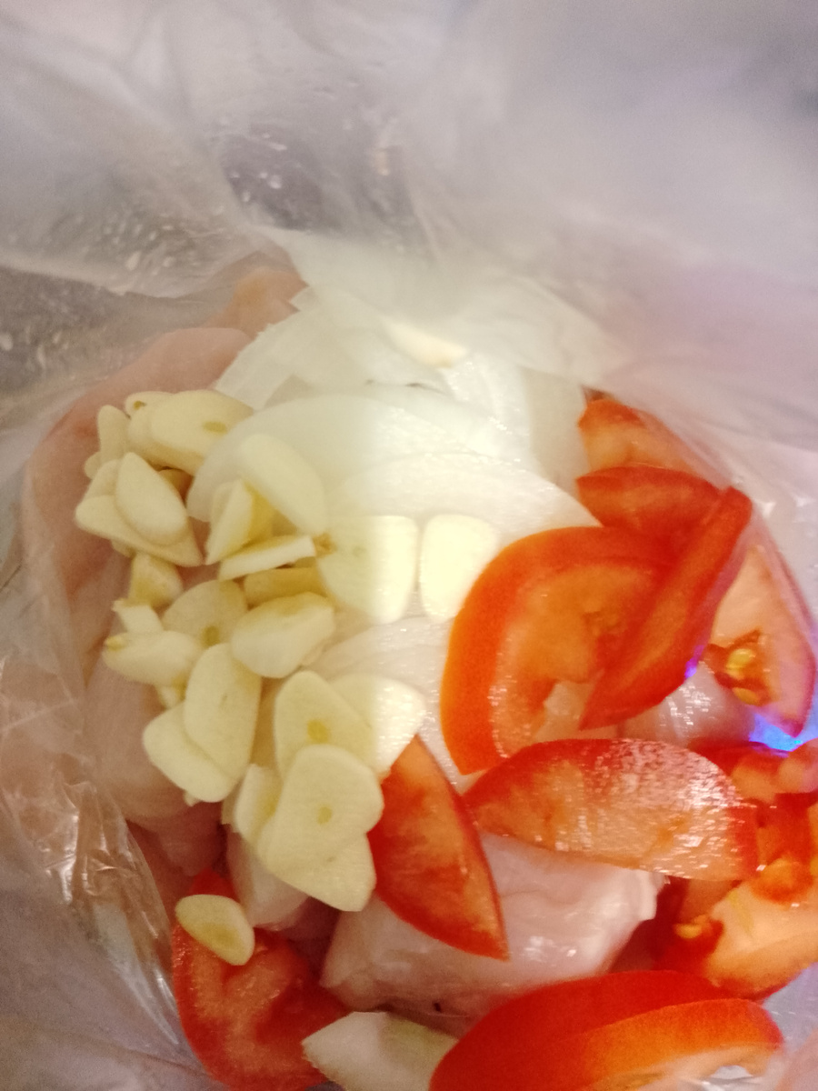 В интернете наткнулась на, то что шашлык из курицы делают на сметане+соль и перец. Мне показалось, что можно модернизировать этот рецепт. Итак, у меня 1кг куриной грудки. Добавила 1луковицу, нарезанную полу кольцами, помидор и 4-5 зубчиков чеснока, нарезанные тонкими пластинками. 3-4 ст. л. Сметаны (у меня 20%) соль+ чайная ложка с горкой хмеле-сунели. Соль и перец по вкусу. Я всегда мариную шашлык в пакетах, мне так удобнее. Плотно завязываем и хорошо перемешиваем. Я отправила в холодильнике на ночь. Жарим как всегда на углях. Есть одно НО... Сметана быстро начинает подгорать, но это не влияет на вкус шашлыка... Крутим интенсивнее. Гарнир и соус на шаш вкус. Шашлык получился очень вкусным и ярким... Однозначно буду повторять. Приятного аппетита! Жду Вас в своём телеграмм канале: Готовьте с удовольствием! Удачи!
