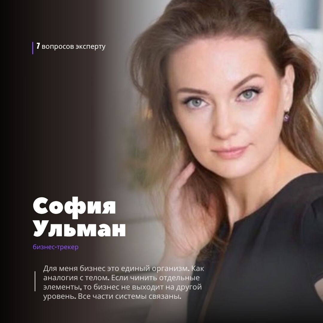 Представьте: компания, которая состояла всего из собственника и ассистента, за несколько месяцев превращается в узнаваемый бренд с несколькими отделами и ростом выручки в 5 раз. Фантастика? Нет, реальный кейс из практики Софии Ульман — человека, который знает, как заставить бизнес работать как швейцарские часы. И сегодня она расскажет, почему формула счастья для бизнеса проще, чем кажется, и почему консалтинг — одна из самых сложных ниш для масштабирования. Каждое воскресенье я приглашаю в блог эксперта ответить на 7 моих вопросов. Сегодня у меня в гостях София Ульман бизнес-трекер с более чем 15-летним опытом в управлении и предпринимательстве, эксперт по масштабированию и систематизации бизнеса, руководитель консалтинговой компании Бизнес-Ателье. 1. София, вы работаете бизнес-трекером с 2018 года в топовых акселераторах. Как изменилось понимание бизнес-процессов за эти годы? Я работаю трекером и в Акселераторах и с коммерческими организациями. За это время сильно изменились требовани