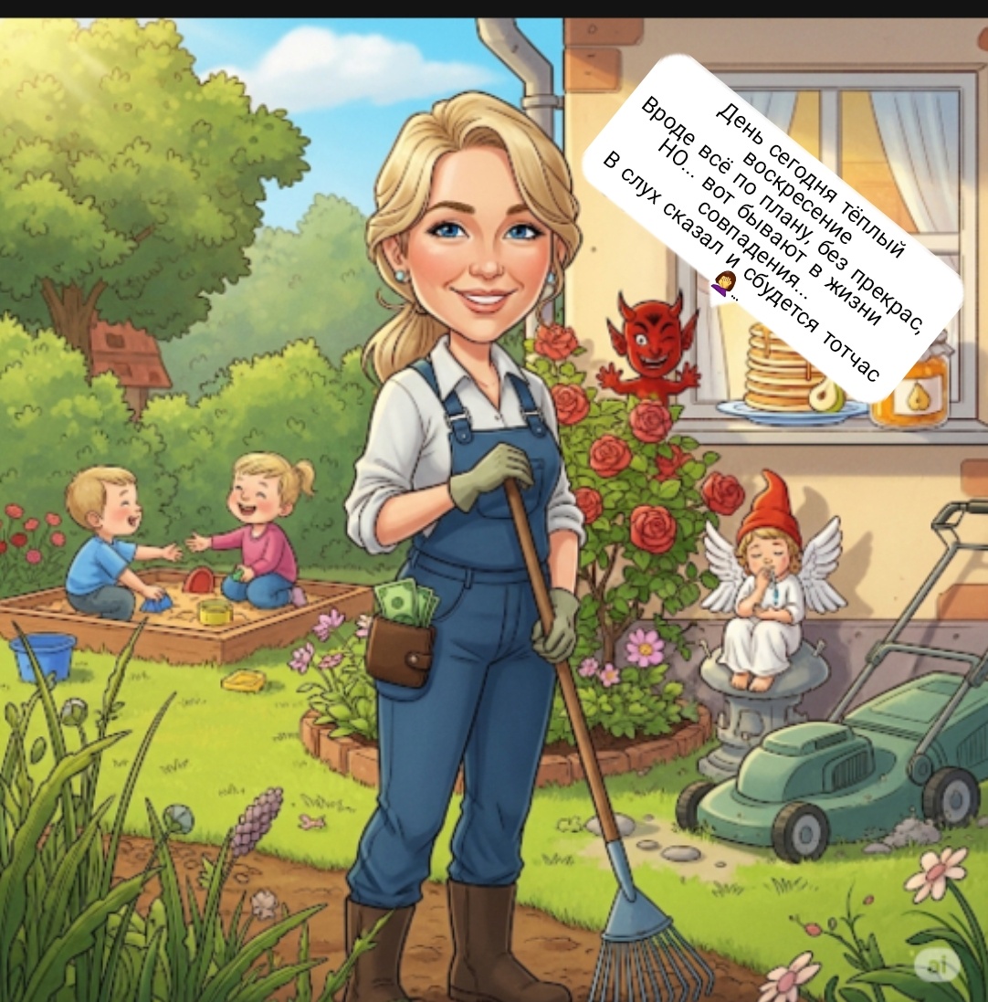 Эх, вот и я сегодня – огородница! 😄 Чуть свет встала, внукам блинчиков напекла, на стол свежее грушовое вареньице поставила... Мммм, вкуснятина! Особенно для вечно худеющей меня. А потом солнышко в окошко – и мы все на улицу повыскакивали! Внуки из песка всякую всячину лепят, а я грабли, лопату и тяпку осваиваю. Дел – непочатый край! К обеду зять с дочерью подкатили – по детям соскучились, выходной общесемейный запланировался. Я спрашиваю: — Чего ж утром не приехали? Позагорали бы! А дочь отвечает: — Да муж отоспаться решил. В 5 утра аквариум потек! Рыбок да соседей от оказии спасали... Странные совпадения... или не очень? И тут я вспомнила! Дочь недавно жаловалась: и аквариум ей разонравился, и соседи рядом "не фонтан". И вот: опа – нету аквариума! Опа – квартиранты съезжать надумали! Зять аж озадачился: — Совпадения-то какие странные... 😏 Банкоматный квест: деньги вперед, карта – назад! Ну, детвору проводили, а мы с мужем – в банк. Слегка разбогатели, айда кредиты гасить! Пр