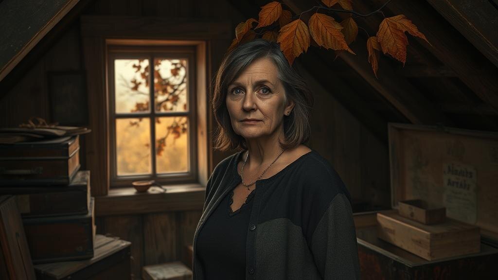 Чердак встречает меня сухим холодом: старое дерево издаёт тихий скрип, под ногами шуршат прошлогодние листья, которые каким-то образом забрались сюда вместе со временем. Под самым потолком, через приоткрытое маленькое окно, ветка каштана медленно колышется, отбрасывая полусонные тени на груду коробок. Я стою, словно на пороге чужой жизни — среди вещей, с которыми предстоит разобраться.