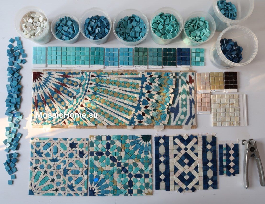 Образцы и палитра цветов мозаики для хамама в восточном стиле
