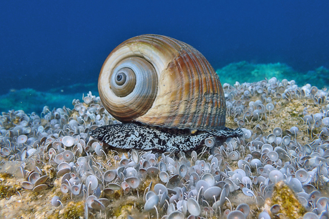 Знакомьтесь: бочечка, гигантская тонна (Tonna galea). Этот моллюск — один из самых крупных представителей своего семейства и скрытных хищников мелководных песчаных грунтов.