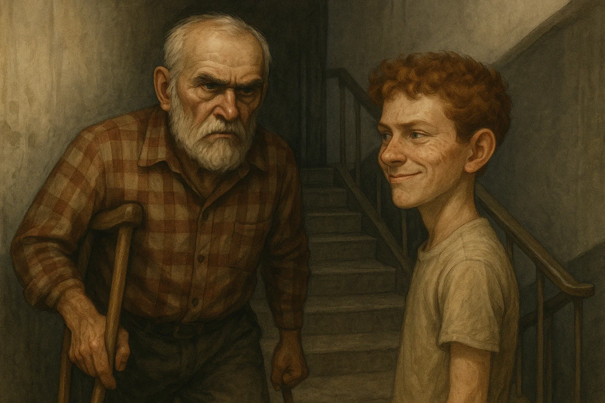 В детстве у меня был друг Димка. Невысокий, худощавый, с копной кудрявых волос и озорной ухмылкой, которая будто приклеилась к его веснушчатому лицу. Он был из тех, кто всегда находил приключения на свою голову, а я, как верный товарищ, неизменно оказывался рядом. Лето 1979 года в нашем 33-м квартале было жарким и пыльным. Мы, семилетние мальчишки, целыми днями слонялись по дворам, выискивая, чем бы заняться. Пинали жестяные банки, строили шалаши из веток, а иногда просто сидели на лавочке и придумывали байки про пиратов или пришельцев. В тот день мы оказались на автобусной остановке — безо всякой цели, просто потому, что ноги сами нас туда принесли. Стоим, болтаем, как вдруг мимо проходит дед. Крепкий, несмотря на возраст, с густой седой бородой, в клетчатой рубахе, заправленной в выцветшие брюки. Но главное — вместо одной ноги у него был деревянный костыль, который громко стучал по асфальту. Он остановился, окинул нас суровым взглядом, покачал головой, словно осуждая за что-то, и, не