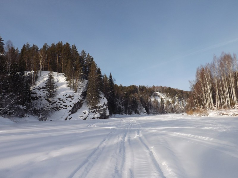 Сначала на реку Чусовую сначала выходить никто не хотел и стояли на мосту и обозревали окрестности. После чего я и ещё несколько человек сошли с моста на реку и заметили, что снег на льду мокрый немного и сообщили об этом всем.