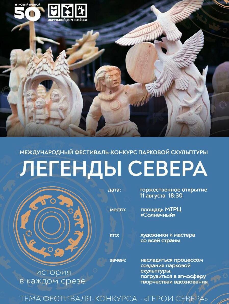 Молот, стамеска и северные сказания Уже сегодня в 18:30 стартует международный фестиваль‑конкурс парковой скульптуры «Легенды Севера». В течение недели мастера из разных регионов России, а также гостья из Сербии будут создавать шедевры из дерева на глазах у жителей и гостей города. Приходите поддержать участников и окунуться в завораживающий мир резьбового искусства на площади перед МТРЦ «Солнечный»! ❤️ Импульс Севера