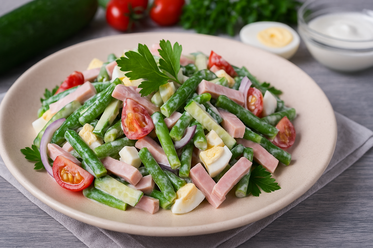«Салат за 10 минут» с ветчиной и стручковой фасолью — быстро, сытно и вкусно!