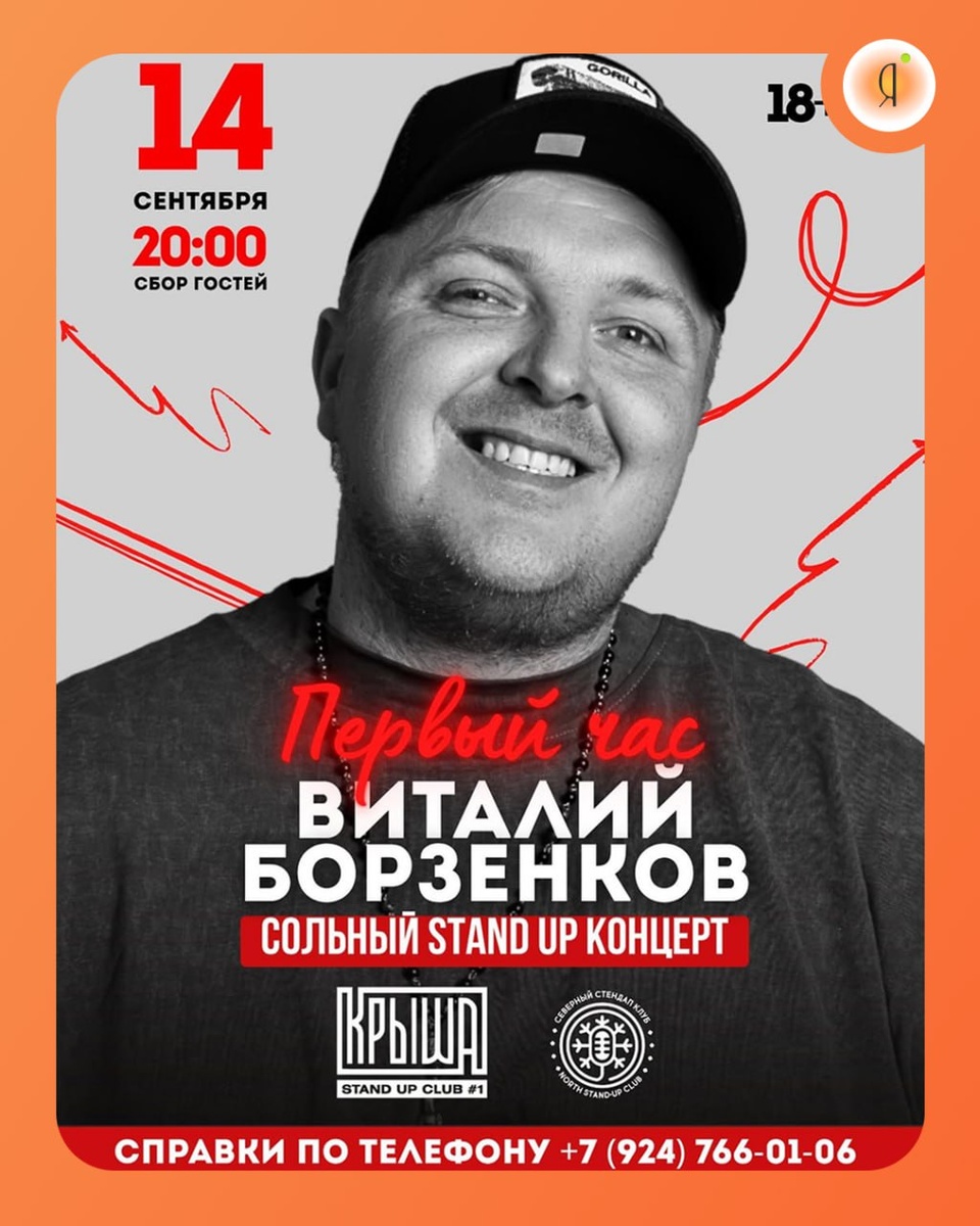 В Якутск приезжает Виталий Борзенков со стендап-программой #Вечером 14 сентября в ресторане «Крыша» состоится вечер живого юмора с участием известного комика Виталия Борзенкова. В программе - авторские монологи и острые шутки в фирменном стиле артиста. 🤩 Острый, иногда даже опасный юмор 🤩 Непредсказуемые шутки "ни в какие ворота" 🤩 Живая энергетика и полный зал смеха 🤩ресторан «Крыша» 14 сентября |20:00 Билеты : • На сайте obchepitmedia.ru • Через приложение MOST 🤩Справки и бронирование столиков: 8-924-766-01-06 Online Якутия | Подписаться