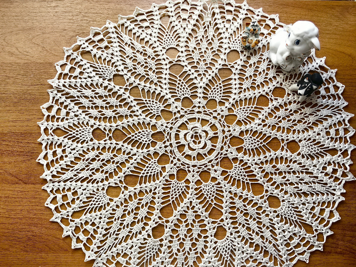 Тёплые вещи летом у меня не вяжутся, а повязать хочется. Так что я продолжаю свою салфеточную эпопею, и вот ещё одна готовая салфеточка, которую я решила назвать "Молочная нежность". А почему, а потому что цвет у неё не белый, а цвет топлёного молока. Вязала я эту салфетку из пряжи "Денди", это 100-процентный мерсеризированный хлопок, цвет 188 (топлёное молоко), в 50 гр. пряжи 330 метров. Использовала для вязания крючок № 1. Ажурная, воздушная, очень мне нравится получившийся результат! Диаметр готовой салфетки у меня получился 46 см и на её изготовление ушло 54 грамма пряжи. Это немного неудобно, так как пришлось использовать второй моточек пряжи. Схему этой салфетки я взяла из журнала-каталога "Моё любимое рукоделие". Журнал старенький ему уже 10 лет это №1 от 2015 года. Раньше я часто покупала подобные журналы, там много схем не только салфеток, но и других вещей, тех же прихваток для кухни или каких вязаных игрушек. И, хотя в журнале приблизительный размер всего 30 см, у меня