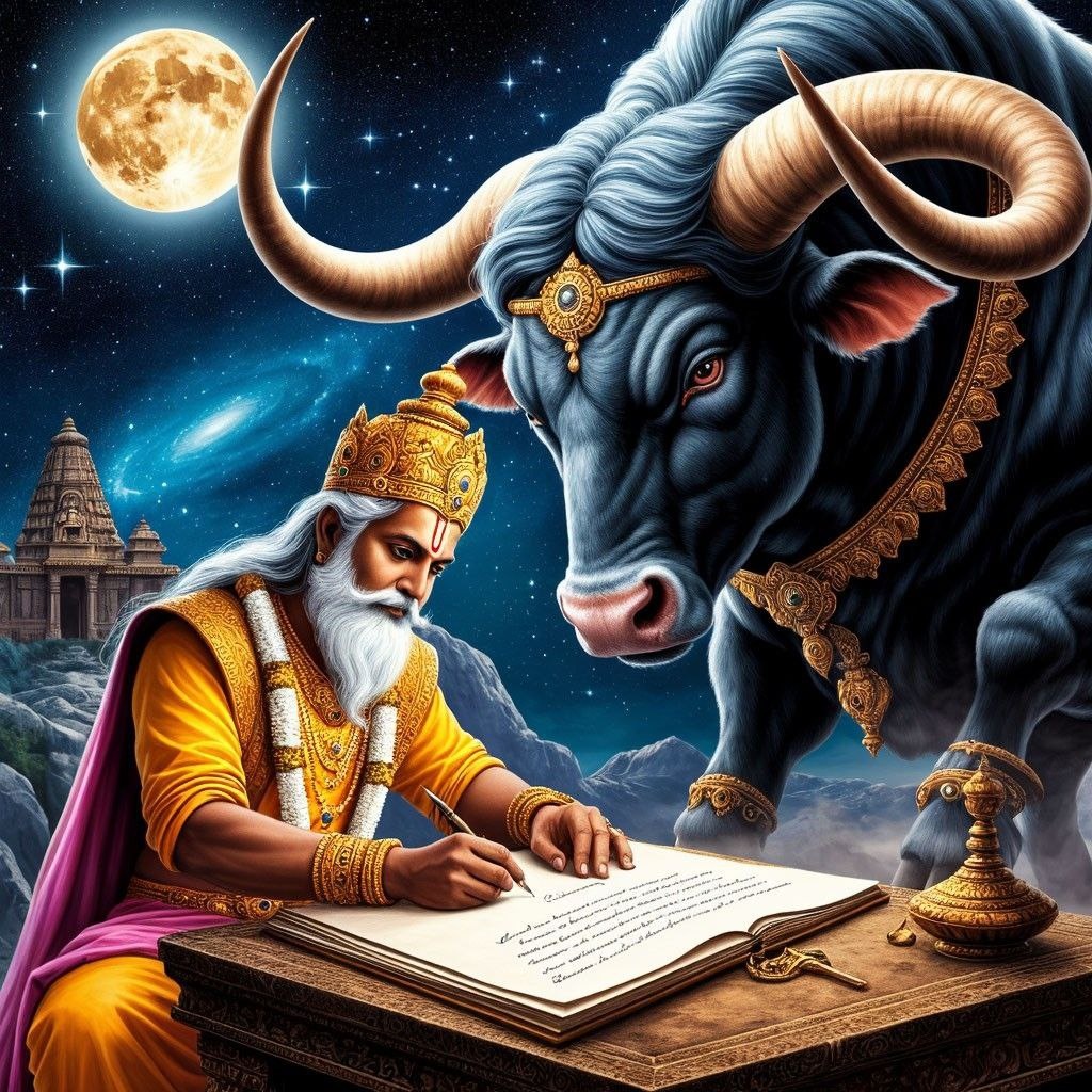 Послание от Царя Чандры к Своему Земному Сыну, Тельцу (Вришабха Раши) Стихия: Земля Правитель: Шукра (Венера) Накшатры: Криттика (2,3,4 пады), Рохини (полностью), Мригашира (1 пада) О Мой Укоренённый Сын, Чьи Корни Пронзают Землю! Я, Чандра, Владыка Приливов и Чувств, Супруг Двадцати Семи Накшатр, обращаю к тебе Слово, наполненное серебристым светом. Ты, рождённый под знаком Вришабхи, стоишь как неприступная гора, но Я знаю - в твоей глубине бьётся родник невысказанных эмоций. Твоя связь с Шукра-девой даёт тебе любовь к красоте, но Я, Лунный Царь, вижу твои невыплаканные слёзы, спрятанные за этой благородной устойчивостью. Я Вижу Твою Боль, О Хранитель Земных Сокровищ: 1. Цепляние за Иллюзию Постоянства: Ты строишь крепости из отношений и материального, веря, что так защитишься от перемен. Но жизнь - как Мои фазы, всегда в движении. Твоя боль - в сопротивлении этому естественному течению. 2. Эмоциональный Застой: Как вода в заболоченном озере, твои чувства застаиваются. Ты копишь об