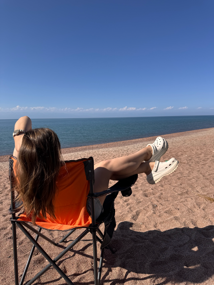 После этого лета Иссык-Куль, знакомый с детства, для меня уже не будет прежним! Мы спонтанное сорвались в путешествие на своей машине, сбегая из кипящего алма-атинского июля. Сейчас пишу гайд по нему: как ехать, где жить, что есть и что смотреть. Скоро опубликую. А пока - мои личные впечатления и фото дикого пляжа. На фоновом проекторе воображения крутился образ Иссык-Куля, не подтвержденный в реальности. Монтаж из деталей, цепляющих внимание с детства, когда восприятие еще хрустальное. Там голубая, чистая, как роса, вода, видно разноцветные камни на дне, песок мерцает золотом. Солнечный бисер колючей облепихи. В воздухе будто разлился флакон Dior. Солнце припекает лопатки, а горный ветер слизывает жар прохладным языком. Тихо, слышно, как хрустит сладкий арбуз на берегу. Этот бирюзово-золотистый образ тихо живет в сознании, не высовывается, не требует воплощения. И, представляете, вдруг — материализуется. Скольжу по реальности, принимаю как есть, со всеми трещинками, они же -