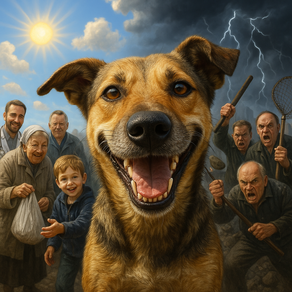 Собаки в этом городе были — что сказать — органичны. Как облезлый забор, как снег в мае, как сосед, который сверлит по выходным. Привыкли. Кто-то даже подкармливал. Не потому что добрый, а потому что остатки гречки не выбрасывают, а делиться — не грех.