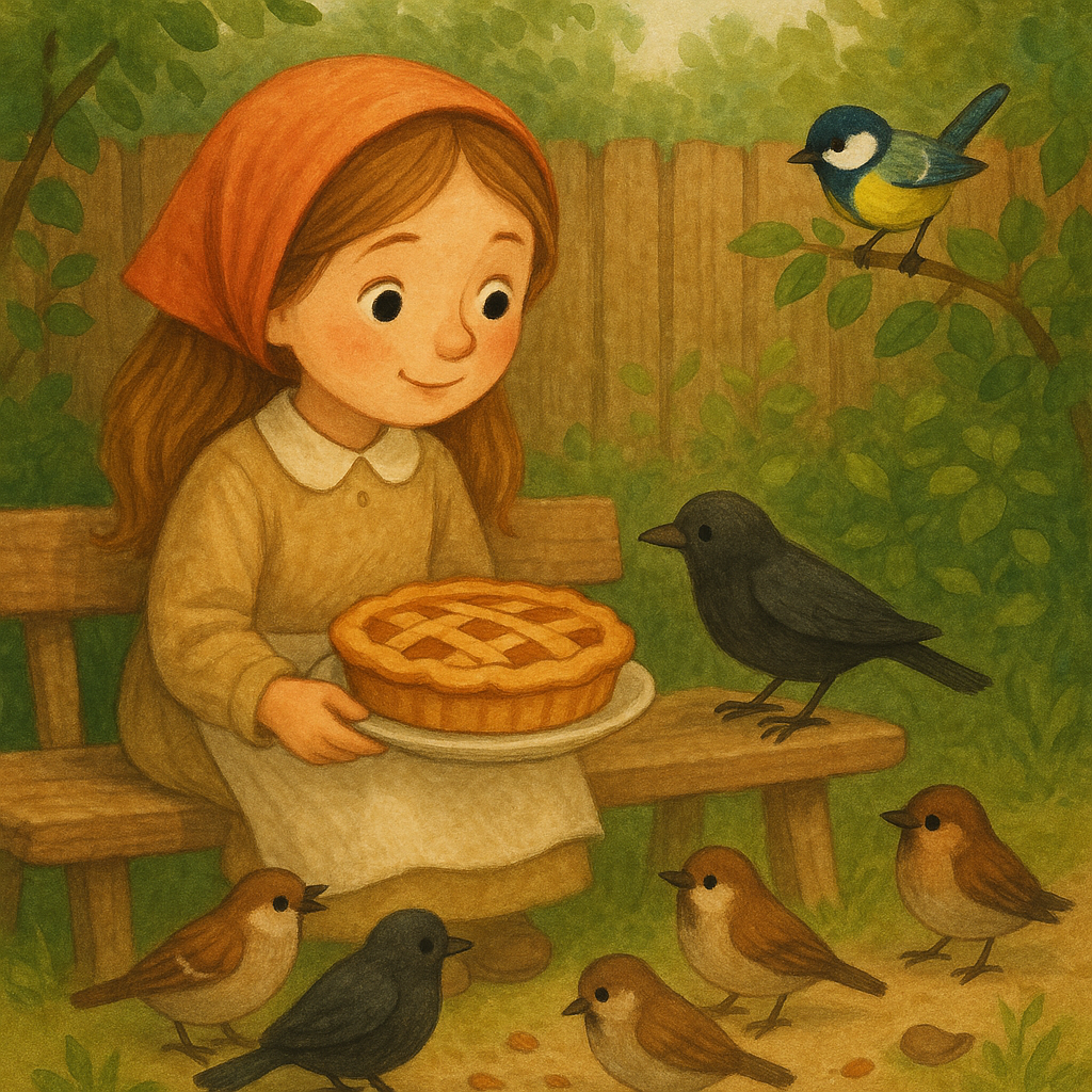 В маленьком домике на краю деревни жила девочка Мила. Однажды утром она решила испечь яблочный пирог. На кухне разлился сладкий запах, а когда пирог был готов, Мила поняла — он слишком большой, чтобы есть одной. — Угостю птиц во дворе! — решила она, нарезала пирог на кусочки и вынесла на лавку. Скоро к пирогу подлетели воробьи, голуби и даже наглый сорокопут. Они весело чирикали и щипали крошки. Но Мила заметила, что одна птичка сидит вдалеке на ветке. Это была маленькая синичка. Она поглядывала на пирог, но не решалась подлететь. — Иди сюда, милая! — позвала Мила. Синичка вздрогнула и спряталась за лист. В это время к пирогу подскочил воробей и чуть не столкнул синичку с ветки. Он громко чирикнул: — Тут таких, как ты, не ждут! Мы первыми прилетели! Мила нахмурилась. Она не любила, когда обижают. — Все гости желанные, — строго сказала она, отгоняя воробья. — А этот кусок — для синички. Девочка положила маленький ломтик пирога в блюдце и отошла в сторону, чтобы птичка чувствовала себя