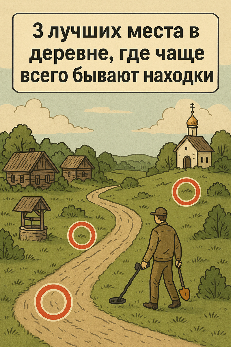 Старые деревни — это кладовая истории. Но, чтобы найти что-то интересное, мало просто бродить с металлоискателем — нужно знать «горячие точки». За годы копа я выделил три места, где находки бывают чаще всего. Когда-то это были главные артерии деревни. Люди ходили, катили телеги, а иногда и роняли монеты, пряжки, пуговицы. Ищите старые карты или просто присмотритесь к ландшафту — старые дороги часто угадываются по лёгким углублениям или линии старых деревьев. 💡 Совет: копать лучше немного в стороне от самой тропы — там находки часто лежат в целости и сохранности. Вода всегда была центром жизни деревни. Здесь люди собирались, ждали очереди, общались. Много мелочей терялось именно рядом с колодцами — от медных монет до украшений. 💡 Совет: не копайте вплотную к самому колодцу — и из уважения, и по технике безопасности. Достаточно обойти место кругом в радиусе 5–10 метров. Если вам удастся узнать, где в деревне проводили ярмарки, гулянья или церковные праздники, считайте, что вы нашли з