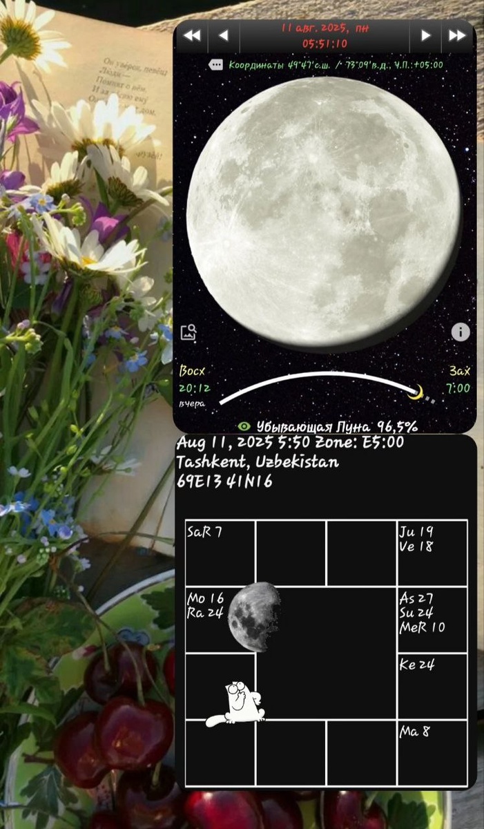 🌿🌜11.08.2025.🌛☘️ Ведическая Астрология Убывающая Луна в Водолее. РетроСатурн. 🌜🙃Еще ощущаются отголоски полной Луны, в Водолее сегодня она немного хаотична и несобрана, может наблюдаться небольшая расфокусировка внимания- хочется взяться за всё, но не знаешь с чего начать. В таком случае, я сажусь пить чай, в процессе нацеливаюсь на что-то одно, с чего всё начнется, а затем, делаю всё по очереди. Главное, без суеты. 🌜😈Во второй половине дня Луна сойдется с Раху- постарайтесь не буянить, хотя очень будет хотеться произвести, как минимум революцию в своей голове и пространстве вокруг. Текущее расположение планет указывает на перемены. Если подойти к ним разумно, действовать стратегически и руководствоваться общечеловеческими нормами и моральными ценностями, результат может оказаться впечатляющим. Внутренние (и внешние) конфликты можно разрешить через отказ от иллюзий: пока вы цепляетесь за что-то, это может мешать вам увидеть нечто более масштабное и значимое. 🌜Меркурий сегод