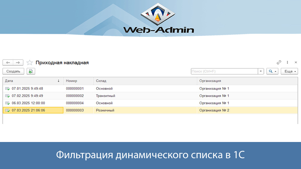 На выходе получаем такую форму, где будут фильтроваться документы по полю склад